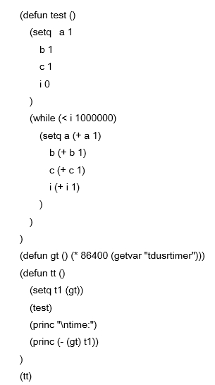 对于LISP,中望CAD+提供的函数数量达到AutoCAD的95%以上。相对于以前的中望CAD,主要支持更多的种反应器以及永久反应器,还增加了工程配置和与ZRX交互的函数。同时在运行速度上,也有大幅度的提高,运行下面的例子: