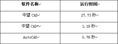 从上面的结果可以看出, 中望CAD+相对于以前的中望CAD在运算效率方面的优势非常明显,且接近AutoCAD的水平。