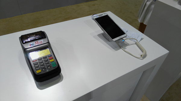 现场还设有三星与银联推出的NFC手机支付服务的体验环节,用户使用该服务后,能将信用卡、借记卡等卡片模拟到手机中,从而实现手机与银行卡的“合而为一”,给用户提供更为便捷的体验。