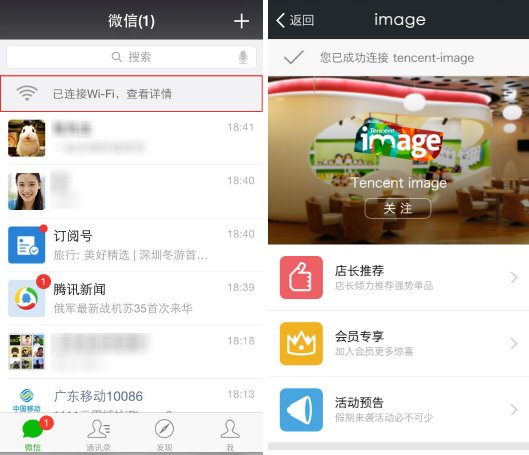 提升用户互动体验:商户接入微信连Wi-Fi后,用户无需再输入繁琐的Wi-Fi账号、密码,通过微信扫码等方式即可快速上网,还能获得商户提供的活动资讯、会员优惠等更多增值服务,极大提升服务体验。例如前期测试接入的餐厅、景区、酒店、KTV、客运站、商场等商户,都可通过微信连Wi-Fi提供购票、点歌、下单、结账等便利功能,在为用户带来惊喜体验的同时,也帮助商户自己提升了经营效率。