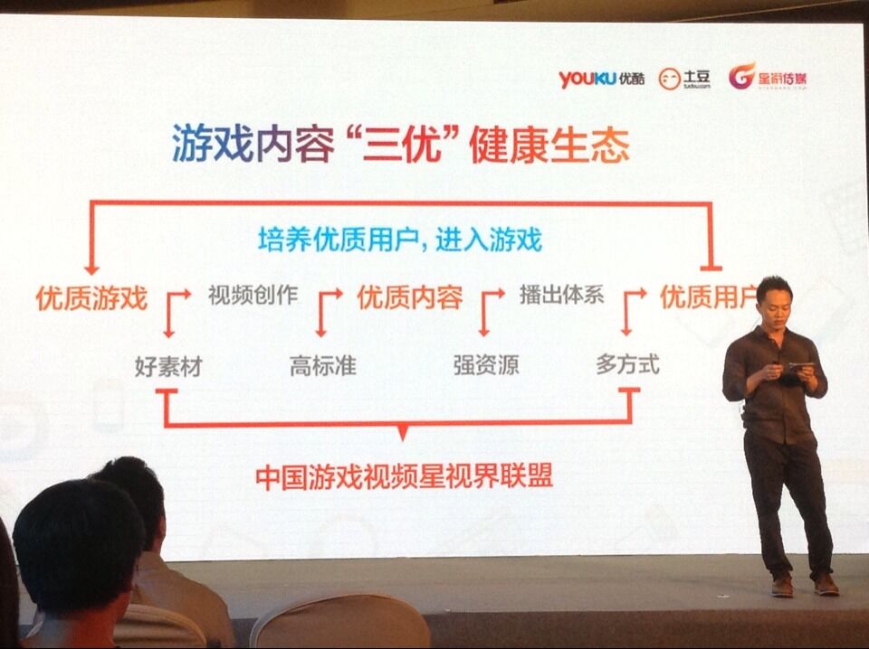 游戏在优酷土豆多屏娱乐生态系统中占重要地位。在优酷土豆的Top10自频道中,仅游戏类就占6席,而日均游戏类视频的VV量就超过5000万。活跃游戏类自频道超过2000个。而优酷土豆视频的分成计划,使得游戏类播客获取分成的排名也位列全类别第一名。