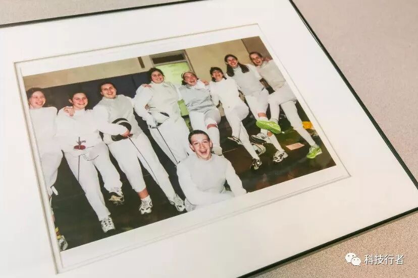 这幅镶框的照片通常挂在她的办公室里,但这位75岁的老教练第一次让记者看到她的照片,并告诉我她对扎克伯格的印象:聪明、有技能、但有点傻。在她身后,击剑队的学生们排成两队正在训练。