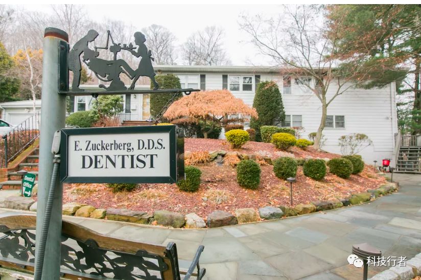 图:扎克伯格儿时的住处,仍然保留着他父亲的牙科诊所标志,尽管这家人已经搬到了加州。