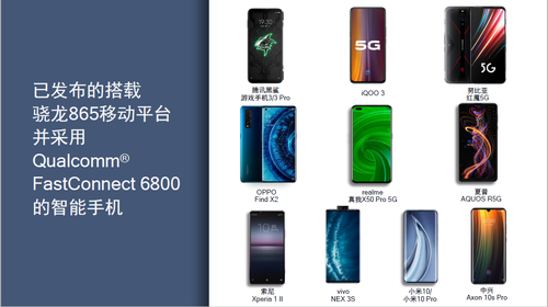 通过搭载骁龙865的手机,我们除了可以体验极致的5G网络之外,还能够享受到顶级的Wi-Fi 6体验。Wi-Fi 6被认为是与5G同时到来的重要技术飞跃,将从根本上重塑Wi-Fi的工作方式。其创新特性在于能够提升网络容量、提供更出色性能、以及更低的时延。对于用户而言,我们能够体验到的是更快的Wi-Fi连接、更省电的终端,并且即使在拥挤区域,也同样稳定出色的性能。比如,小米10系列全系均支持Wi-Fi 6技术,OPPO Find X2系列、vivo NEX 3S、iQOO 3、腾讯黑鲨游戏手机3、realme真我X50 Pro 5G、中兴Axon 10s Pro,索尼Xperia 1 II,夏普AQUOS R5G等机型也均将支持Wi-Fi 6作为核心卖点之一。