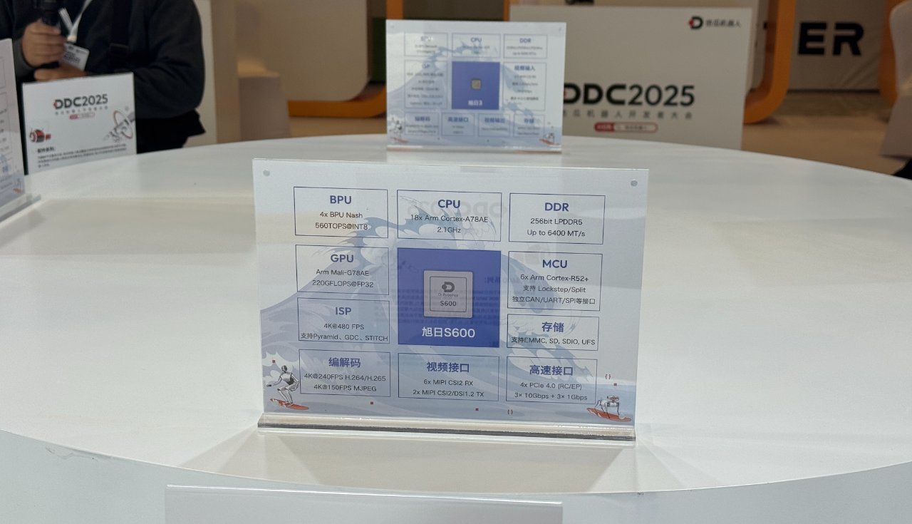 据王丛介绍,“S600开发平台具备高达560TOPS算力,集成了6颗MCU,支持机器人大小脑一体化控制,DDR带宽高达204.8GB/s。”