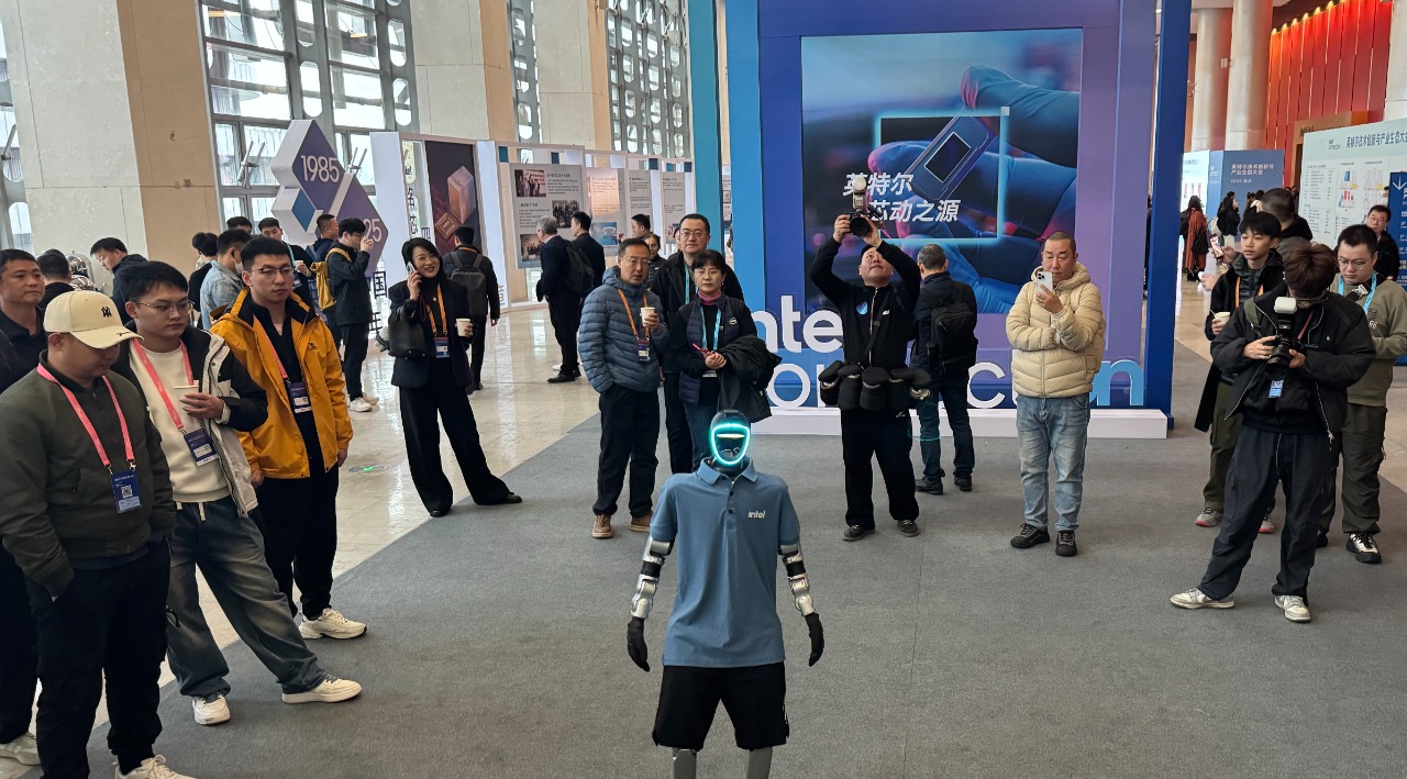 身着Intel深蓝色工装T恤的宇树G1人形机器人,在众人围观下走来走去,时不时还与观众来个互动,这是我在参加2025英特尔技术创新与产业生态大会、第一天走进会场时看到的一幕。