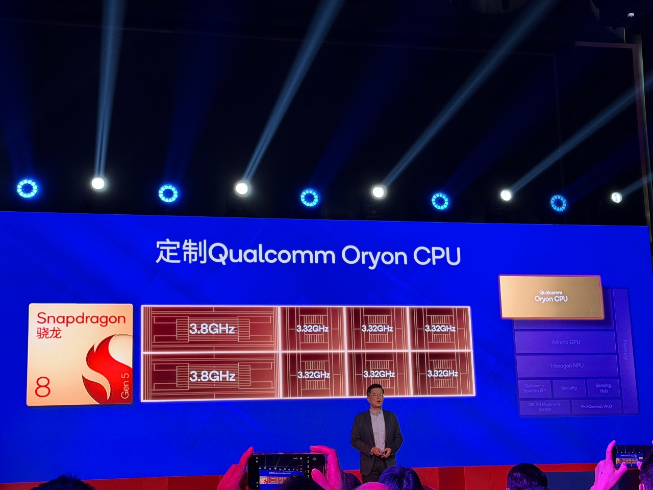 第五代骁龙8被Chris Patrick比作“一副精心设计的拼图”,强调其系统级协同的设计理念,该拼图下,它引入定制Qualcomm Oryon CPU、全新切片架构Adreno GPU、Hexagon NPU协同AI引擎,强调端侧AI体验。高通技术公司产品市场高级总监马晓民用“生而旗舰,为顶级体验而生”概括它的核心定位。