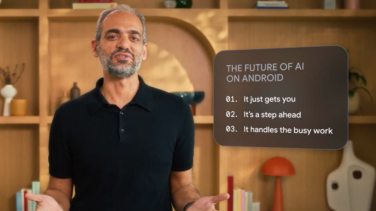 基于此,Sameer Samat提到 Android 的核心三要素:优美的设计(Beautiful Design)、最有帮助的 AI(the most helpful AI)、个性化(Personality)。他强调,无论是在手机、手表、汽车还是电视上,Android 始终是用户率先体验未来的地方。
