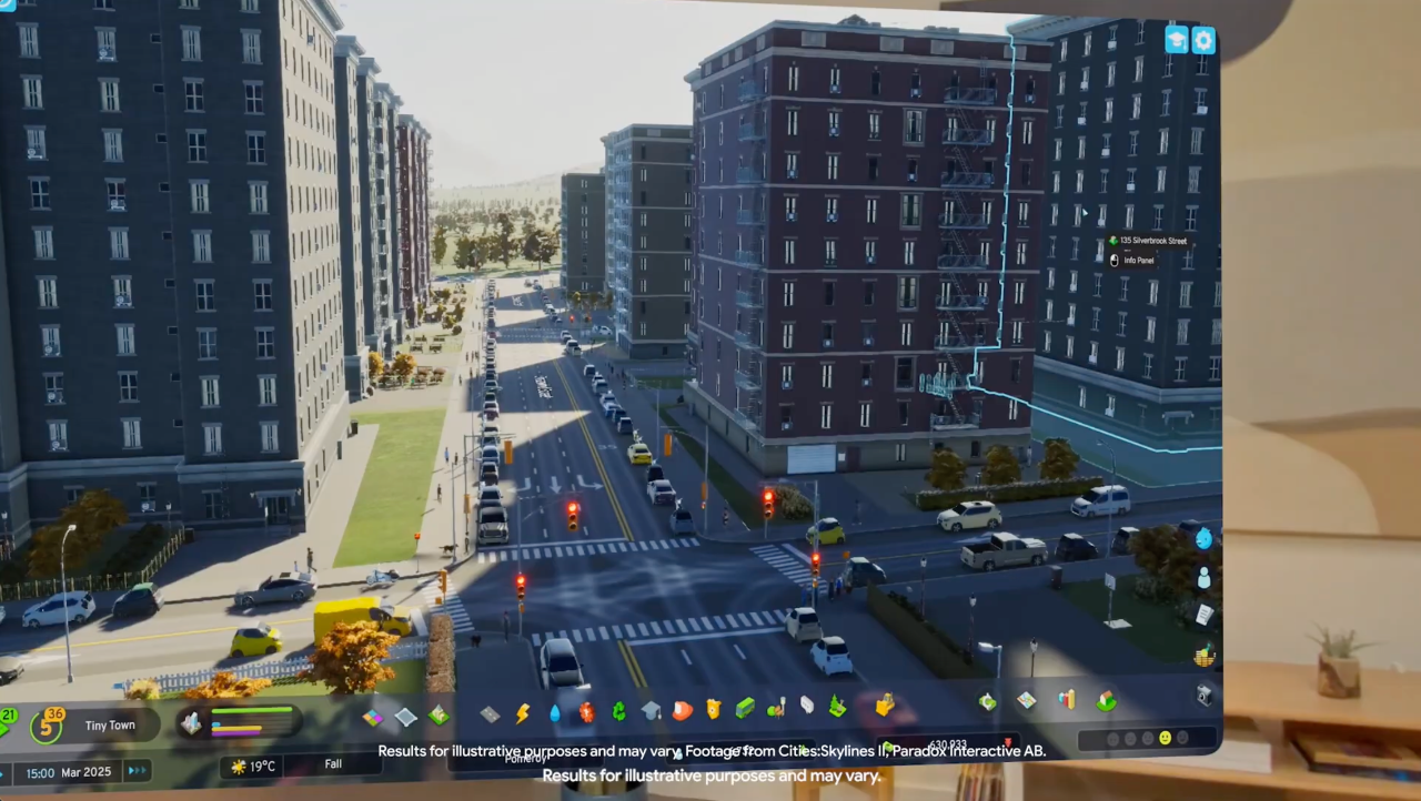 首先是PC Connect,用户可以把电脑屏幕拉到眼前变成“巨幕”。Austin Lee现场演示,把正在PC上运行的游戏《城市:天际线 II》“拉”到XR空间,瞬间获得上帝视角。当然你也可以脑洞大开,在无限大的虚拟空间中,同时摆放PC窗口、XR应用窗口等,实现真正的多任务处理。