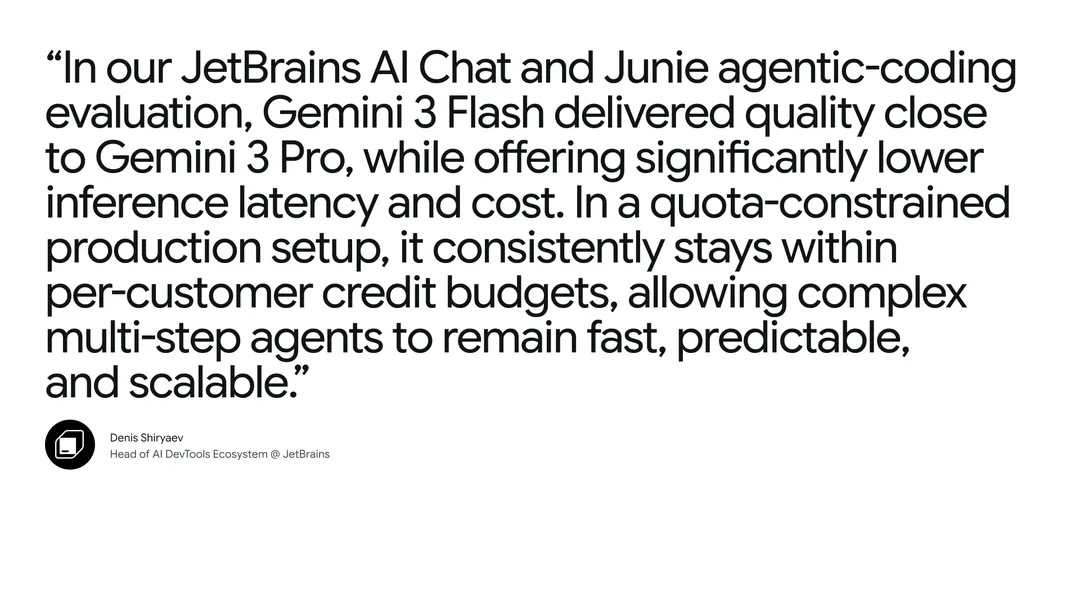 上个月我们已经提到过,Google的一个新平台叫Google Antigravity(谷歌反重力),它就是一个让AI帮你写代码的平台。用了Flash之后,开发者可以一边构思一边让AI实时把想法变成代码,整个过程行云流水。JetBrains(就是那个做各种编程神器的公司)的AI负责人说,Flash的质量接近Pro,但延迟和成本却低得多,这让他们的多步骤复杂AI智能体变得既快又可预测。