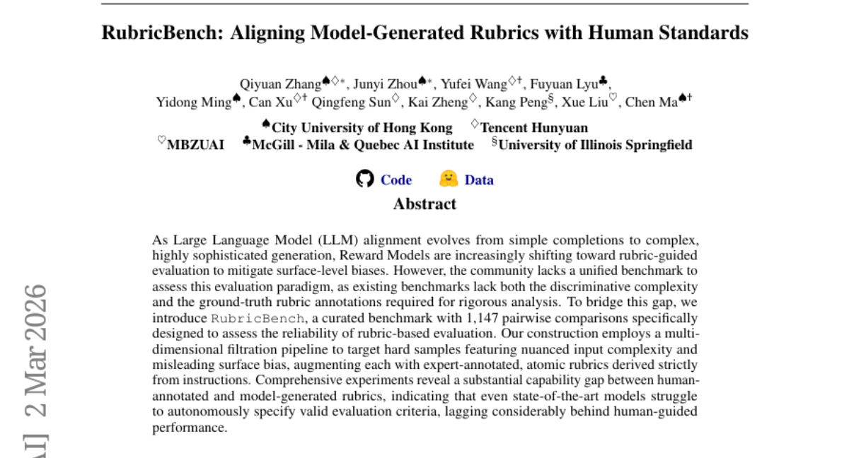 这项由香港城市大学联合腾讯混元、麦吉尔大学-Mila&魁北克AI研究所、伊利诺伊斯普林菲尔德大学以及阿布扎比穆罕默德·本·扎耶德人工智能大学共同完成的研究发表于2026年3月,有兴趣深入了解的读者可以通过论文编号arXiv:2603.01562v1查询完整论文。